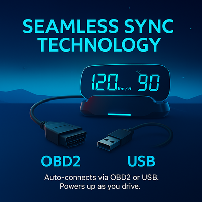 DriveHUD X1 integrates directly with your car systems, adapting instantly through OBD2 or USB for precise, hands-free functionality.