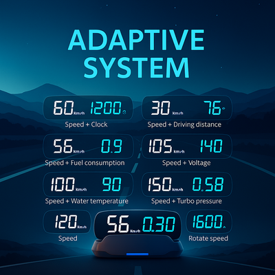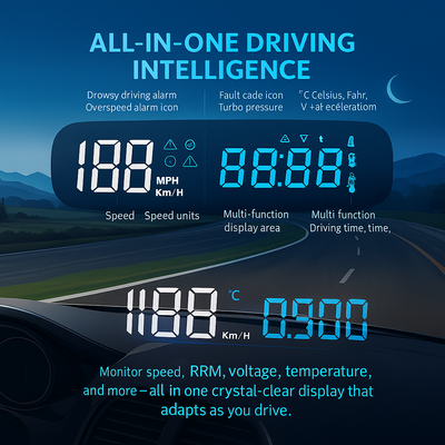 A smart head-up display featuring real-time GPS, speed, and driving data in one elegant view.