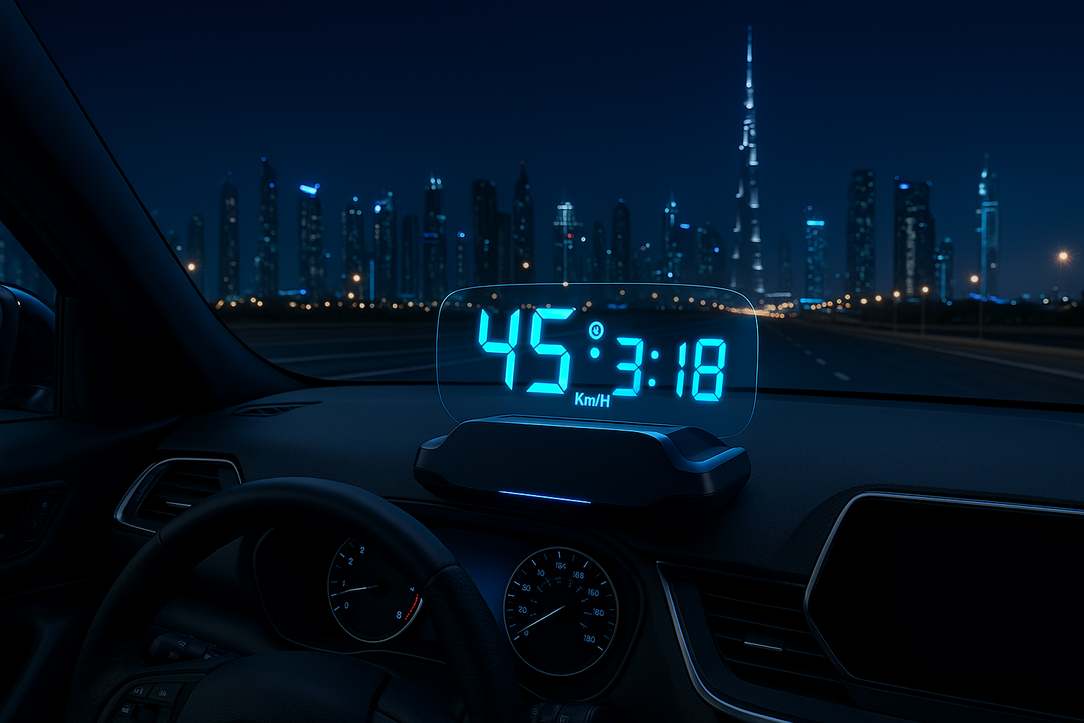 Upgrade your drive with the all-new DriveHUD X1, a precision-crafted head-up display that projects speed, RPM, and GPS data directly into your line of sight. Designed in matte graphite with adaptive brightness and instant ignition sync, it transforms your dashboard into a seamless fusion of technology and clarity.